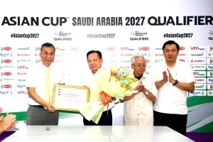 Ngay sau buổi lễ, các đại biểu đã dự khán trận đấu giữa ĐT Việt Nam và ĐT Nepal, chúc mừng chiến thắng 3-1 của thầy trò HLV Kim Sang Sik.